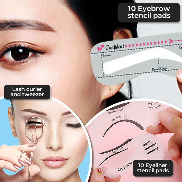 Bereik nauwkeurige en professionele oogmake-up! Deze set bevat sjablonen, een wimperkruller en een hoogwaardige pincet waarmee je ogen er perfect uitzien.